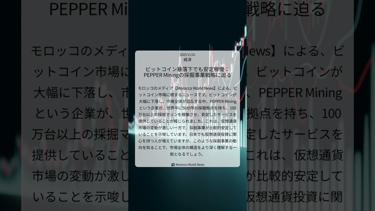 ビットコイン暴落下でも安定稼働:PEPPER Miningの採掘事業戦略に迫る|Morocco World News|2025/11/22|経済 VideoMining 0 Share FacebookTwitterGoogle+ReddItWhatsAppPinterestEmail Check on YouTube 0 Share FacebookTwitterGoogle+ReddItWhatsAppPinterestEmail