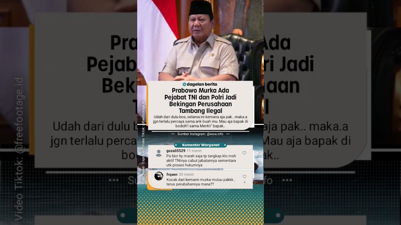 Prabowo Murka Ada Pejabat TNI dan Polri Jadi Bekingan Perusahaan Tambang Ilegal #beritaviral VideoMining 0 Share FacebookTwitterGoogle+ReddItWhatsAppPinterestEmail Check on YouTube 0 Share FacebookTwitterGoogle+ReddItWhatsAppPinterestEmail