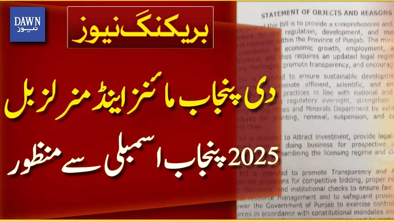 Punjab Mines and Minerals Bill 2025 Passed By Provincial Assembly | Breaking News | Dawn News VideoMining 0 Share FacebookTwitterGoogle+ReddItWhatsAppPinterestEmail Check on YouTube 0 Share FacebookTwitterGoogle+ReddItWhatsAppPinterestEmail